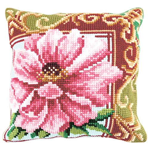Trimits Halvstygn korsstygn kudde kit, kudde rygg ingår, förtryckt duk, garn och nål ingår 40 x 40 cm (15,75 x 15,75 tum), målad blomma