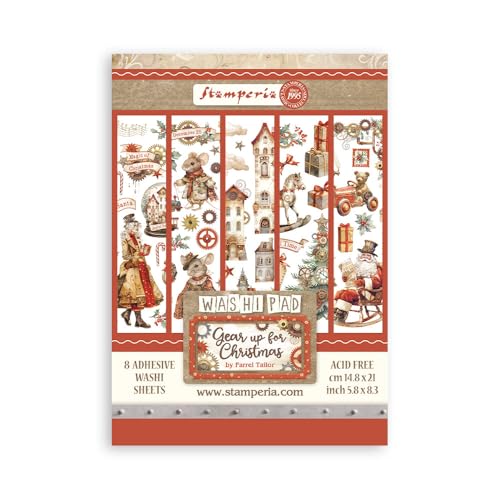 Stamperia – Washi Pad för scrapbooks, album, kort, bullet journals och more, genomskinlig, lätt att klippa, akid fri, perfekt för hobbyer, hantverk och gåvor (Gear up for Christmas) (A5) (8 ark)