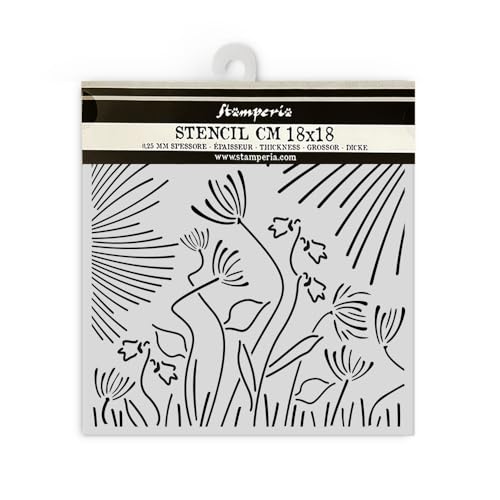 Stamperia – tjocka stencils för scrapbooks, album, kort, bullet journals och annat, flexibelt material, lätt att rengöra, perfekt för hobbyer, hantverk och gåvor (skog – abstrakta blommor)