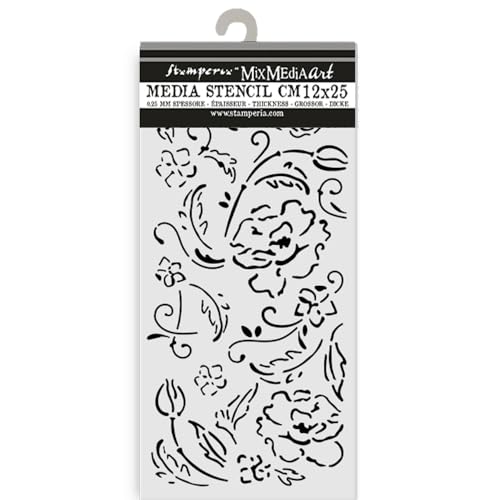 Stamperia – tjocka stencils för scrapbooks, album, kort, bullet journals och annat, flexibelt material, lätt att rengöra, perfekt för hobbyer, hantverk och gåvor (gammal spets – blommor)