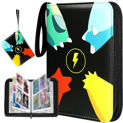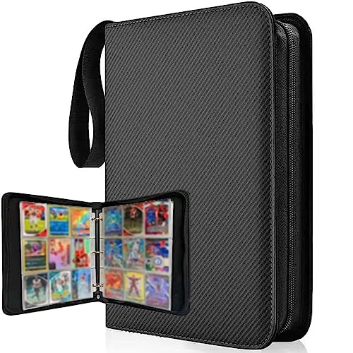 Roffatide 4 fickkort pärm med 50 avtagbara dubbelsidiga sidor ark samlarkort pärm rymmer upp till 400 kort fickor dragkedja album för pojkar flickor