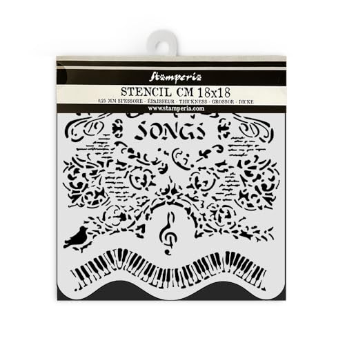 Stamperia – tjocka stencils för scrapbooks, album, kort, bullet journals och annat, flexibelt material, lätt att rengöra, perfekt för hobbyer, hantverk och gåvor (musik – låtar och piano)