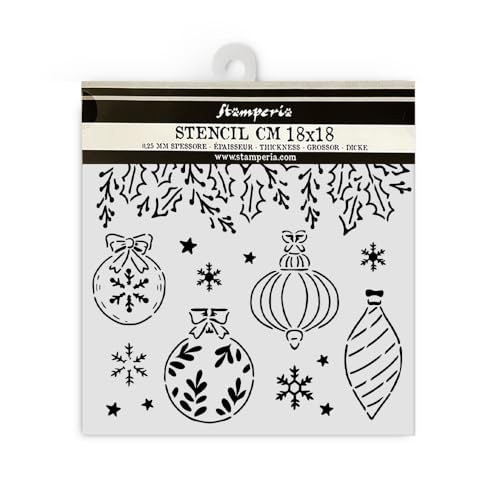 Stamperia – tjocka stencils för scrapbooks, album, kort, bullet journals och more, julgranskulor, flexibelt material, lätt att rengöra, perfekt för hobbyer, hantverk och gåvor (spårsprickaren)