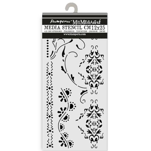 Stamperia – tjocka stencils för scrapbooks, album, kort, bullet journals och annat, flexibelt material, lätt att rengöra, perfekt för hobbyer, hantverk och gåvor (gammal spets – borders)