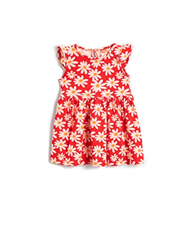 Koton Blommig tryckt klänning korta ärmar klänningar brud flicka, Röd design (4d1), 12/18 meses
