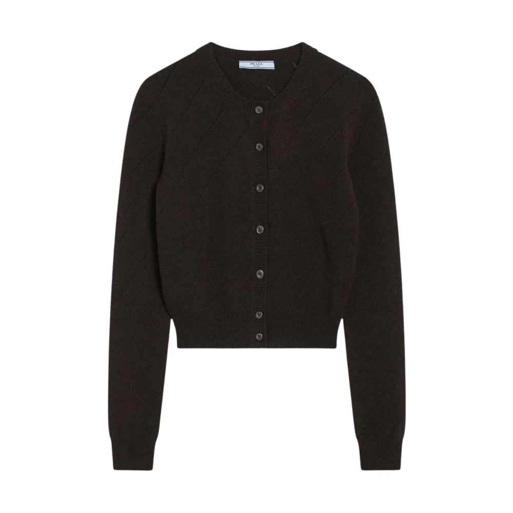 Prada, Stickade Tröjor , Dam, S, Brun Cardigan Tröja Kort Stil