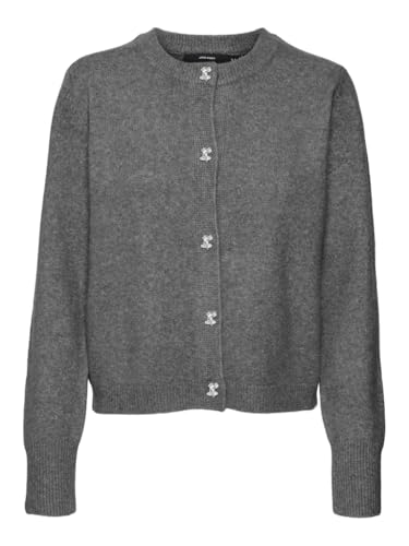 VMFIONA LS kort knapp cardigan GA Boo, Medium grå melange/detalj: melerad W. Bow knapp, M