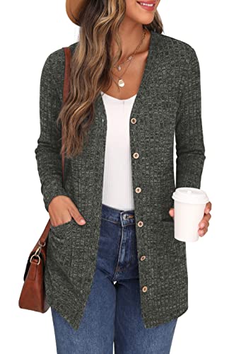 ONLY Dam Kort Stickad Tröja Lång ärm V-ringad Cardigan Stickad Basic Stretch Tröja ONLCAROL., Color:Darkgreen, Size:XL