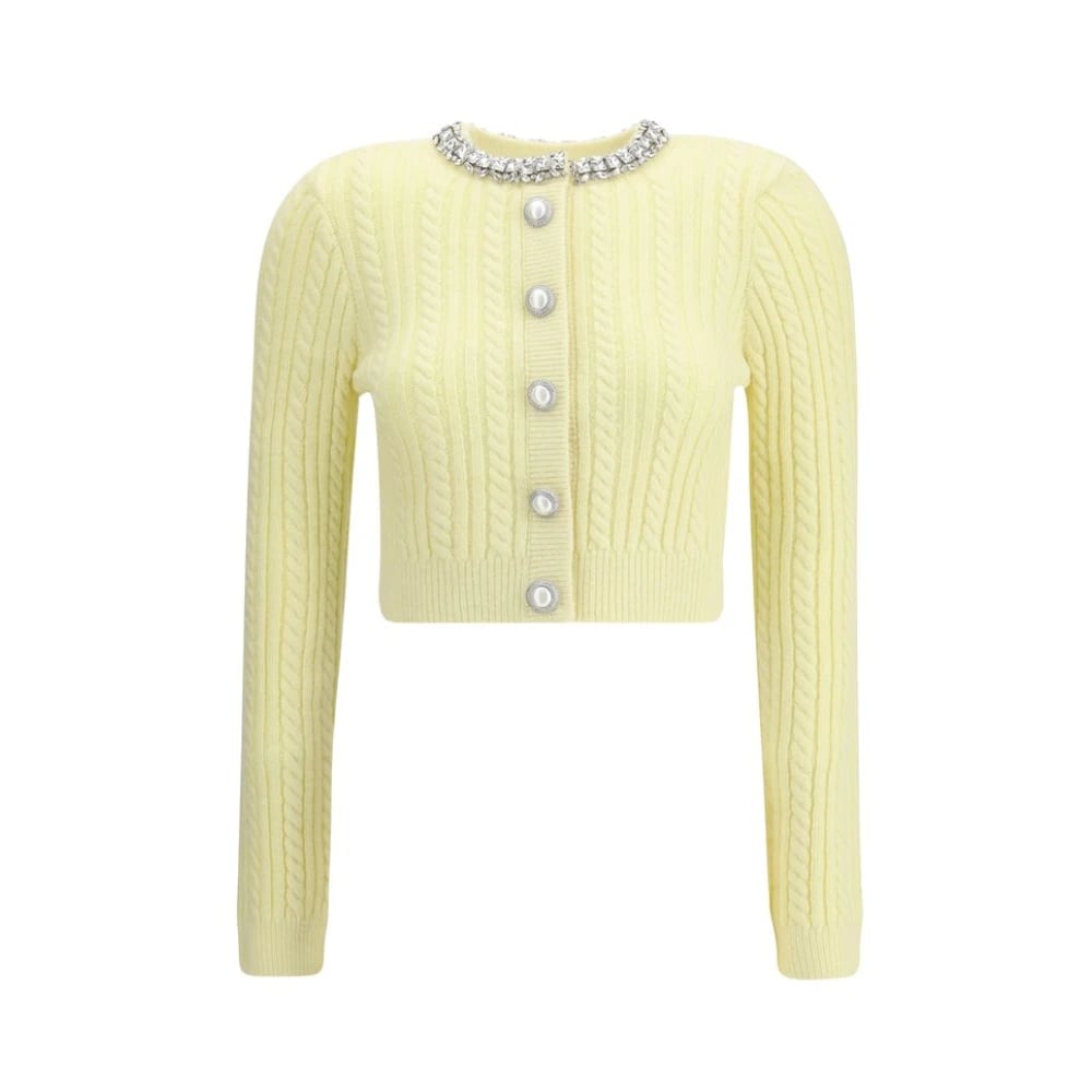 Self Portrait, Stickade Tröjor , Dam, M, Kort Alpacka Cardigan med Strassknappar