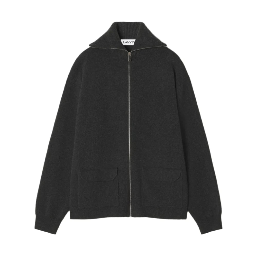 Lanvin, Stickade Tröjor , Herr, M, Kashmir, Kort zip-cardigan med hög krage