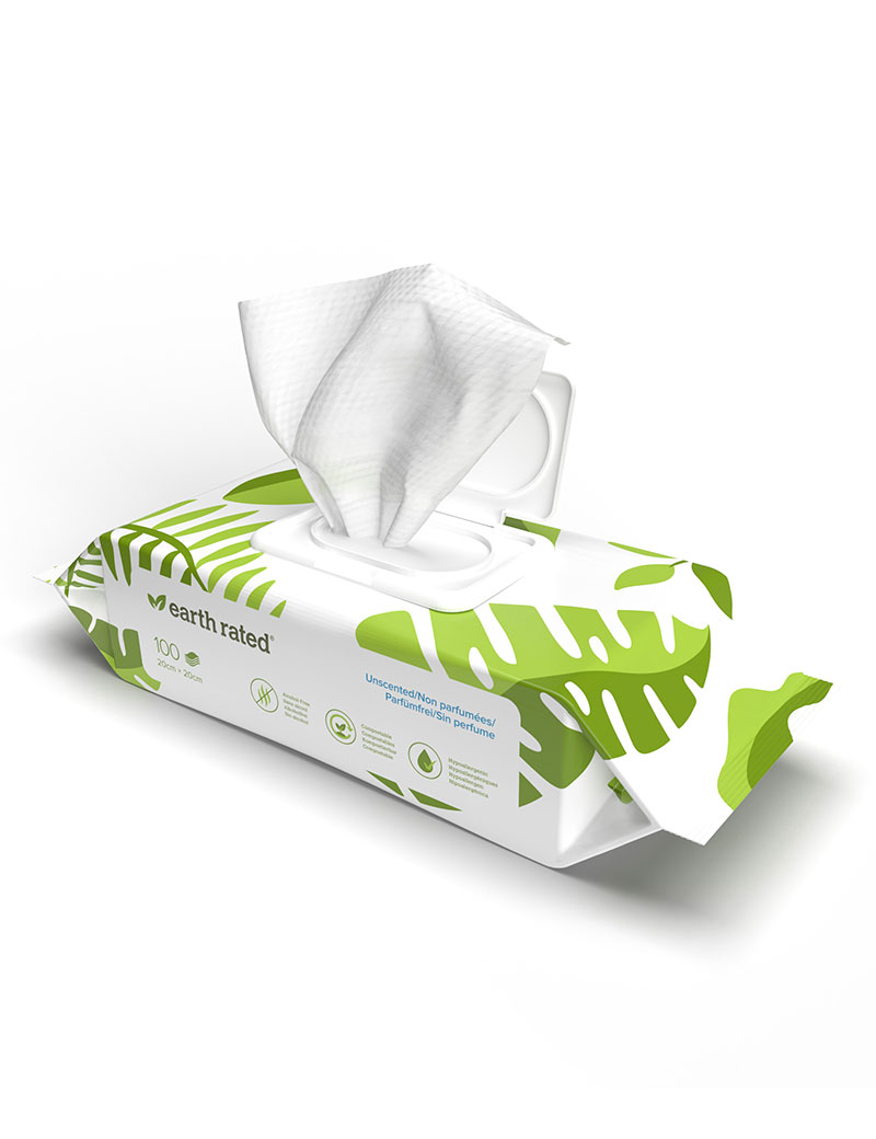 Earth Rated Compostable Wipes Unscented 100-pack OBS KORT DATUM!