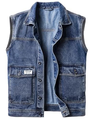 Harbrosrce Herr jeansväst kort ärmlös vintage jeansjacka ärmlös modejacka biker casual denim motorcykelrock, B - denimblå, XL