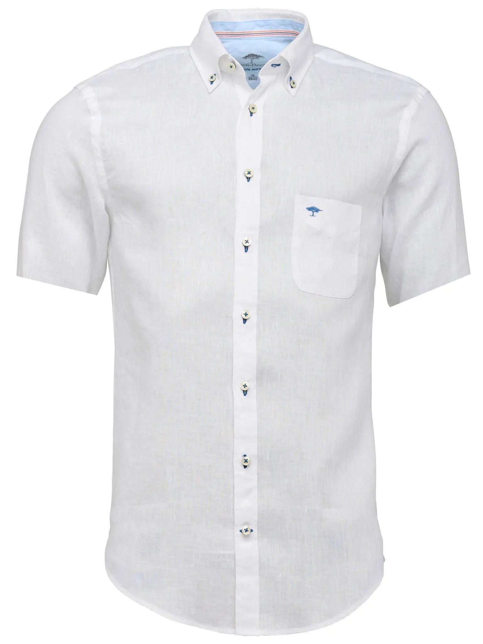 Fynch Hatton skjorta linne kort ärm bröstficka vit - M