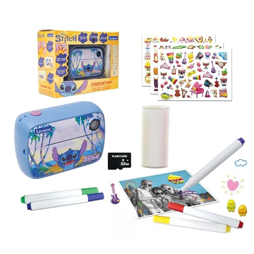 Lexibook, Starcam® Print Disney Stitch, paket med HD digitalkamera och omedelbar skrivare, SD-kort och fotoanpassningskit, Blå, DJ149D