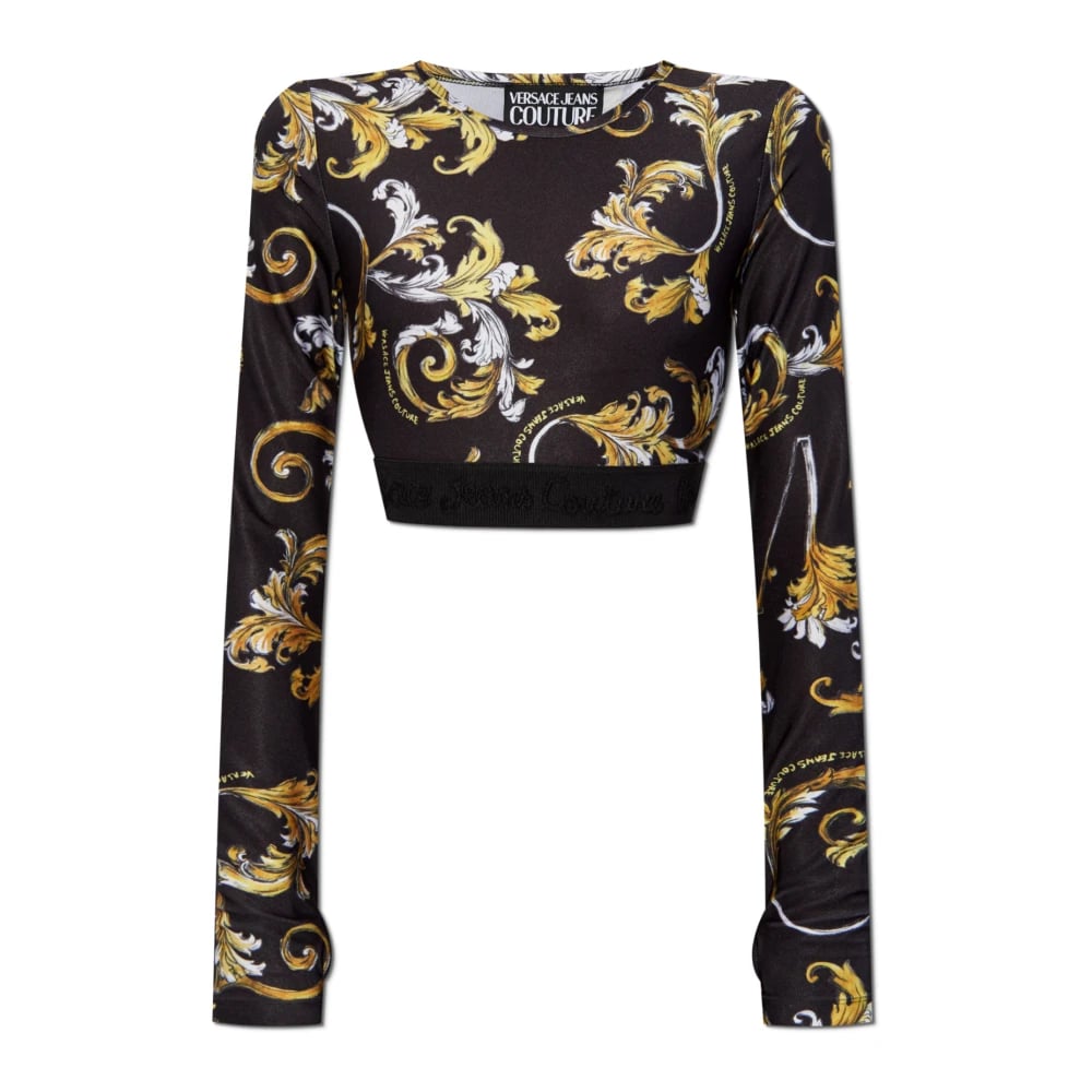 Versace Jeans Couture, Toppar , Dam, M, Kort topp med Outline Barocco print