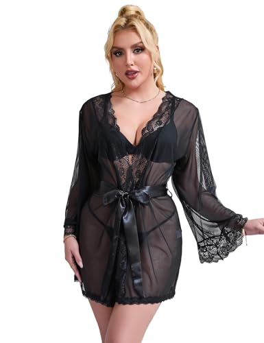 comeondear Kimono dam, sexig spets, negligé, underkläder, damer, sexiga underkläder, curvy stora storlekar, babydoll, badrock, kort rock, erotiska sexiga underkläder för mulliga kvinnor, morgonrock