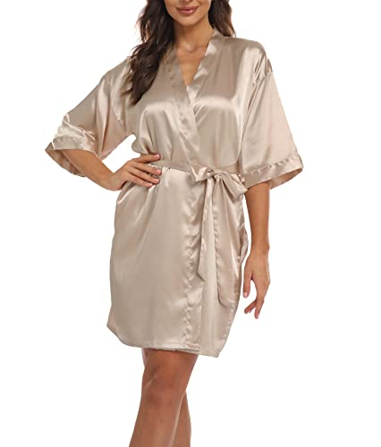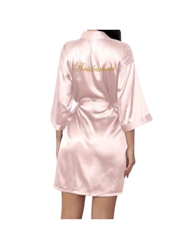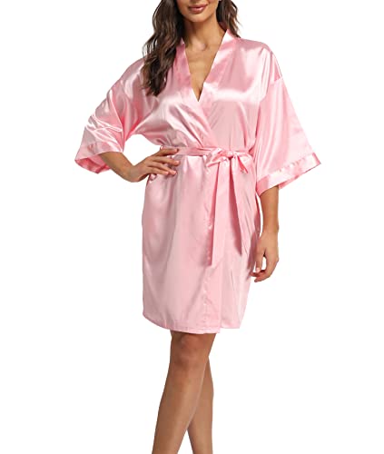 VOGUEMAX Dam kort kimono rock silkeslen satin badrock brud brudtärnor bli redo nattkläder mjukt nattlinne, Puderrosa, Medium