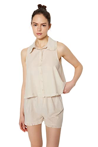 Trendyol Dam enkel volang detaljerad vävd skjorta kort pyjamasset, rock, 34, sten, 60
