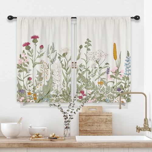Riyidecor Ljusgrön lämna växt små korta köksgardiner blommor botanisk vildblomma blomma blommig stav ficka bondgård kafé gardiner ört vintage sött sovrum vardagsrum behandlingstyg