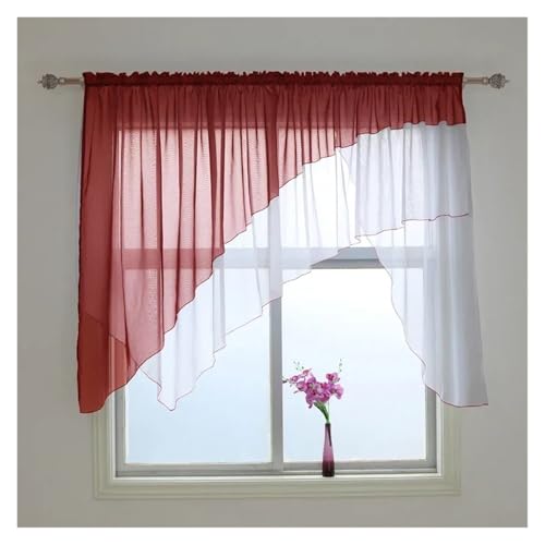 MTKSFDC korta gardiner oregelbunden fasad kant vardagsrum gardiner kort genomskinlig kök balkong fönster gardin 1 st ogenomskinliga gardiner (vinröd, stav-POCKET_B 250 cm x H 120 cm)