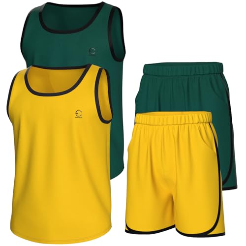 Essenclo pojkar kläder set, atletisk rund hals ärmlös t-shirt och pojkar korta set kläder med fickor 4 st - storlek 3-16, Set-4, 13-14