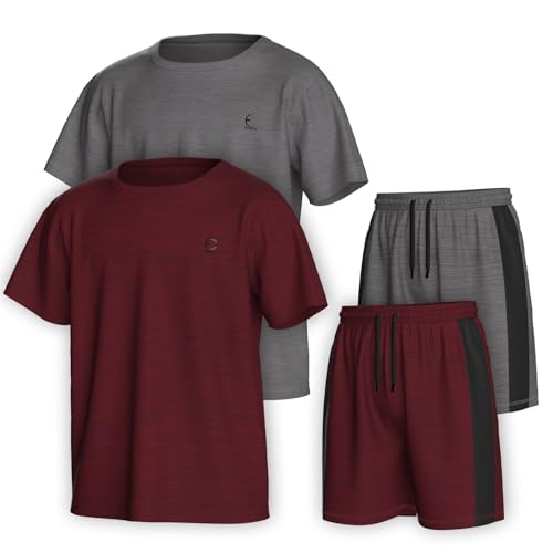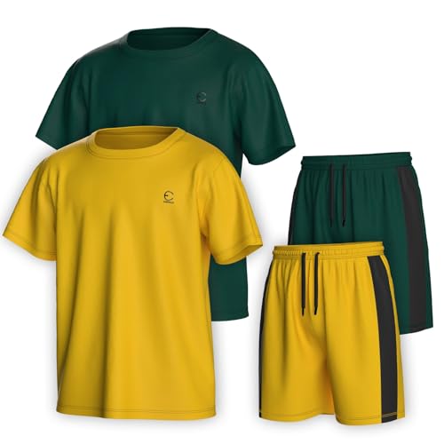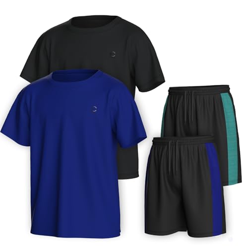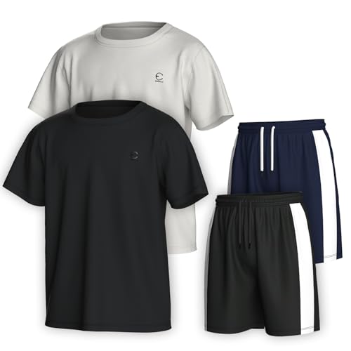 Essenclo Pojkar Kläder Set Tagless Loose Athletic Performance Crew Neck T-shirt och korta kläder Storlek 3-16 (4 delar), Set-2, 9-10