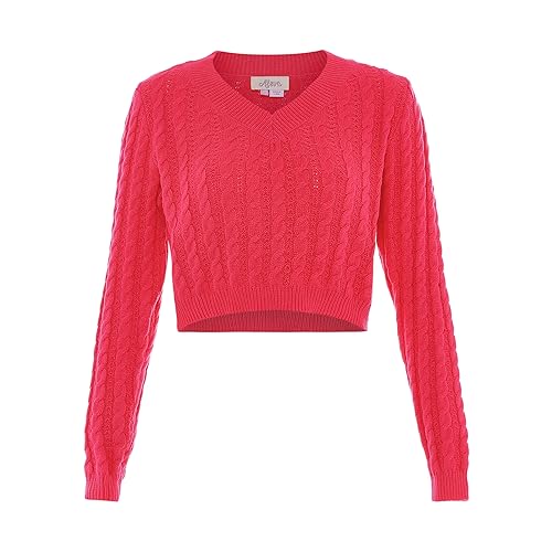 Aleva Dam, Kläder Dam, Kort Tröja med V-ringning och Twist-stickad, Rosa, Storlek XL/XXL, XL
