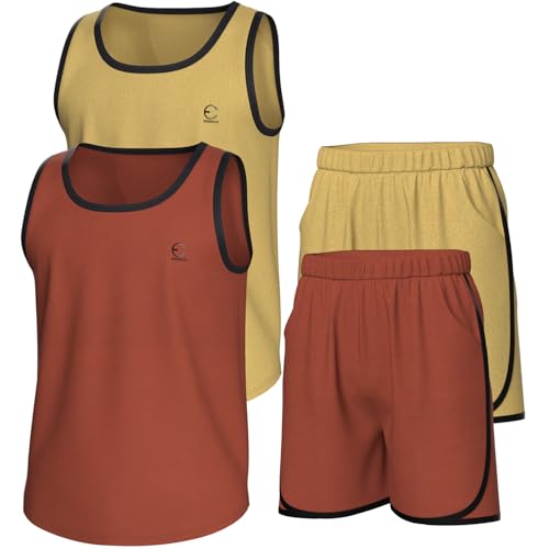 Essenclo pojkar kläder set, atletisk rund hals ärmlös t-shirt och pojkar korta set kläder med fickor 4 st - storlek 3-16, Set-4, 9-10
