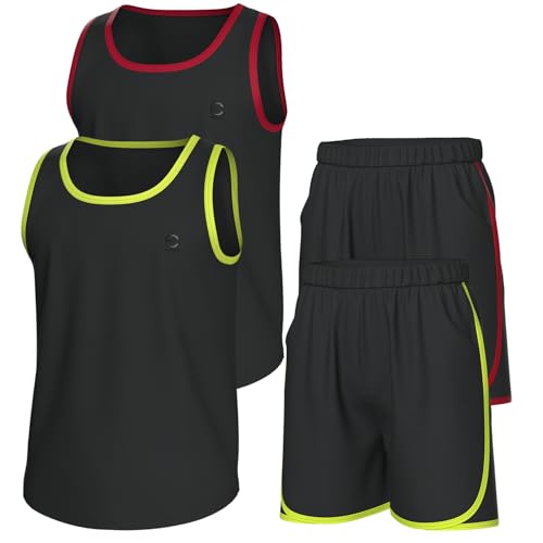 Essenclo pojkar kläder set, atletisk rund hals ärmlös t-shirt och pojkar korta set kläder med fickor 4 st - storlek 3-16, Set-4, 11-12