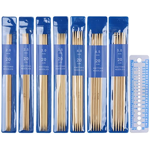 Coopay Bambu sticknålar set, 20 cm dubbla spetsar med nålrem, 35 stycken lätt rak nålspel 2,0–5,0 mm, kort för strumpor stickning och nybörjare strumpnålar set