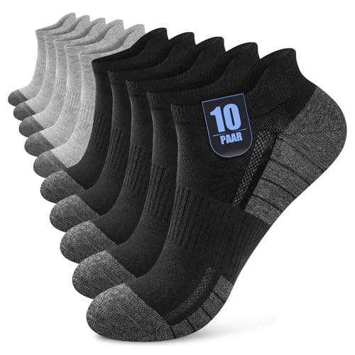 TUUHAW Strumpor Män Kvinnor Bomull 10 Par Kort Herr Strumpor Kort Kvinnor Svarta Vita Svarta Grå, Osynliga, Med Halkfritt Silikon, 35-50, Svart x 5 + vit x 5, 35-38 EU