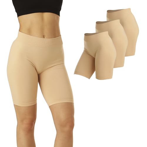 Basic Treasure 3-Pack Korta Leggings Dam, Cykelbyxor, Underbyxor, Underklänning, Kjol, Anti-Skavning, Beige, XXL