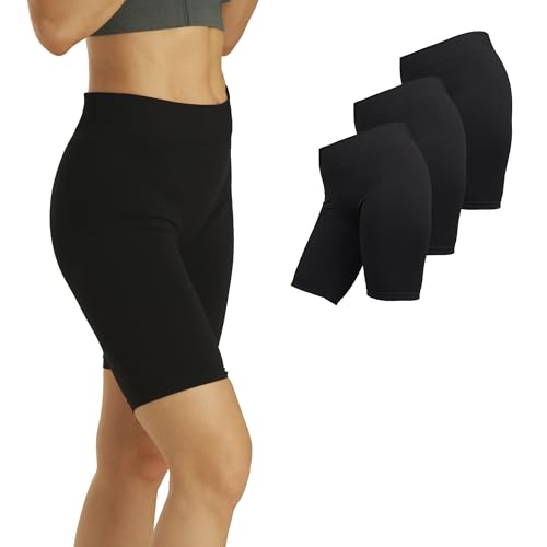 Basic Treasure 3-pack korta leggings, dam, cykelbyxor, dam, korta, underbyxor, dam, underklänning, kjol, anti-skavning, underbyxor, svart, S-M