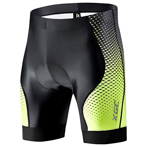 XGC herr korta cykelbyxor och cykelunderbyxor cykelshorts cykelbyxor för män elastisk ventilerande 4D svamp sittkudde med hög densitet, Svart_grön, L