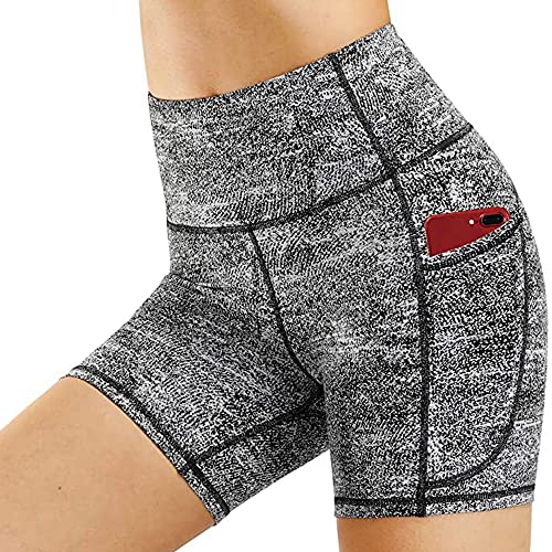 KOEMCY Korta sportbyxor, dam, hög midja, yoga, sportshorts med fickor, korta byxor, leggings, cykelbyxor, löparbyxor, ogenomskinliga, sommar, hotpants för gym, fitness, träning, yoga, GRÅ, L