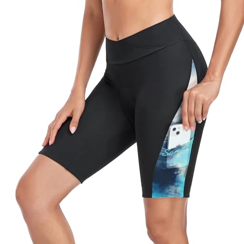 Sportneer Cykelbyxor dam med sittdyna 4D vadderade cykelbyxor korta med ficka elastiska ventilerande cykelbyxor dam stoppning smärtfri snabbtorkande