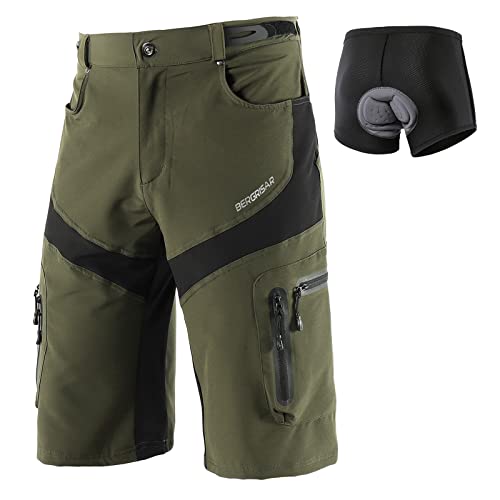 BERGRISAR MTB-byxor, herr, korta cykelbyxor, cykelbyxor, lös passform med 6 fickor, ventilerande och vattenavvisande, Avtagbar vadderad grön, L
