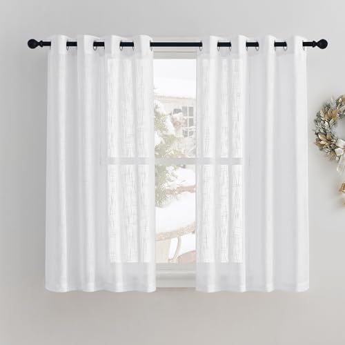 MRTREES Voilegardiner, 122 cm långa, 2 paneler med stångficka, för dörr, sovrum, kök, hängande, korta, genomskinliga gardiner, 140 x 122 cm, vit
