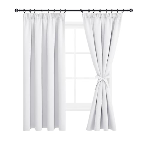 DWCN Sovrum gardiner för skensystem, mörkläggningsgardiner med gardinband, veckband gardiner korta mörka gardiner mörka gardiner i kök, 137 x 117 cm (H x B), grå vit, set om 2