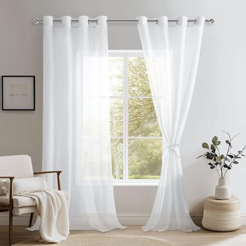 MRTREES Voile vita gardiner 148 tum hängande 2 paneler voile gardin panel stång ficka för dörr sovrum kök 55 x 48 tum hängande korta genomskinliga gardiner 140 cm x 122 cm