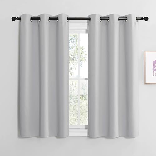 NICETOWN Gardin ljusgrå gardiner, korta fönster, gardiner, badrum, mörkläggningsgardiner med öljetter, gardin, ogenomskinlig kort gardin, modernt sovrum, set om 2, termiska gardiner, H 137 x B 107 cm