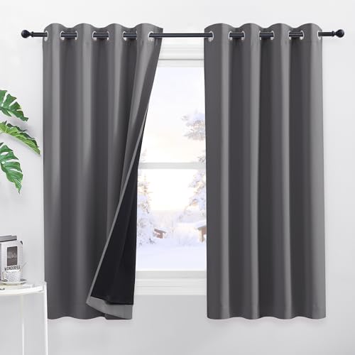 DWCN Gardiner ogenomskinliga gardiner med veckband mörkläggningsgardiner med gardinslipsar, gardiner korta gardiner kök sovrum termisk gardin köldskydd, 137 x 117 cm (höjd x bredd), grå, set om 2
