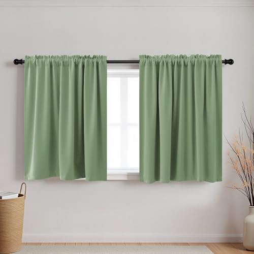 KOUFALL Salvia gröna gardiner 61 cm längd för badrumsfönster 2-pack stång ficka rum mörkläggning kafé gardin nivåer mörkläggning ljusgrön korta gardiner för små fönster 86 x 60 cm lång
