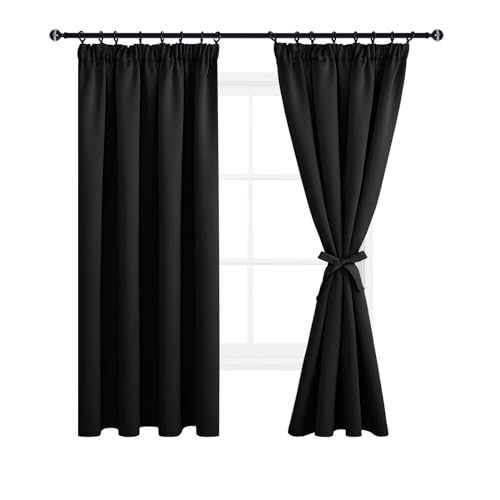 DWCN Sovrum gardiner för skensystem set om 2 stycken H 183 x B 167 cm, mörkläggningsgardiner med gardinband, veckband gardiner korta mörka gardiner mörka för barnrum, svart