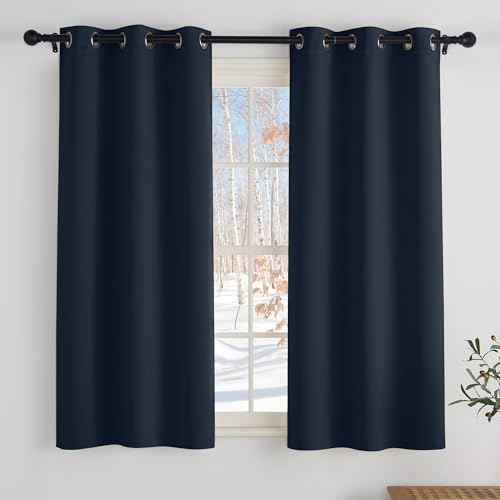 DWCN Marinblå mörkläggningsgardiner för vardagsrum, korta gardiner för litet fönster, mörkläggningsgardiner för rum för pojkrum, källare, 76 cm längd sovrumsgardiner – 102 cm x 76 cm, marinblå, 1 par