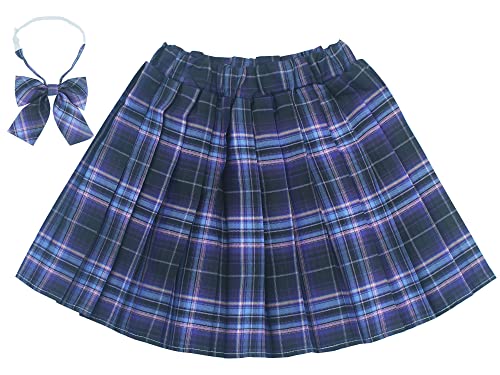 Maeau Flicka skolflicka rutig kort veckad kjol elastiskt band i midjan kjolar högskola skater tennis, med integrerade shorts, fluga, 120–170 cm/5–14 år, 11, 160
