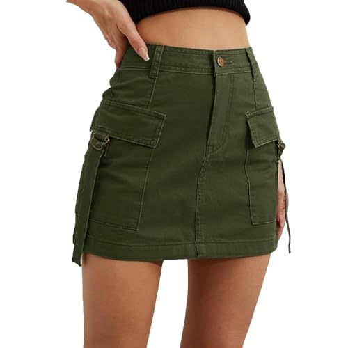 Cargo kjol dam kort – cargokjol knälång sommar vintage minikjol hög midja casual korta kjolar med fickor cargo kjol vandringskjol cargokjol omlottkjol streetwear Y2K kjol pennkjol, Grön, S