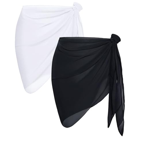 Wisebom Pareo Dam, Pareo Sarong Strand Täcker Kjolar, Bikinis Multipurpose Beach Wrap Korta Chiffong Strandstrandöverdrag Semester Party Strandkläder, 2 stycken svart + vit, 180 x 50 cm/70,86 x 19,68
