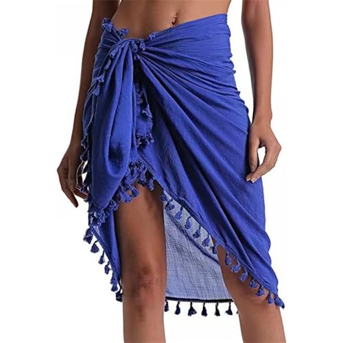 BrightGlow Damer strandkjol strand linda saronger kort sexig strandkjol strandkläder kjolar sarong med tofs transparent wrap kjol minikjol baddräkt bikini cover up en storlek, Blå #3, One Size Kort