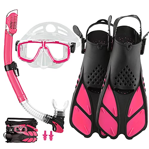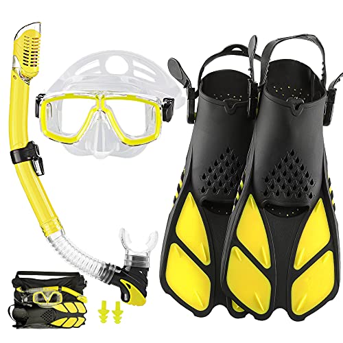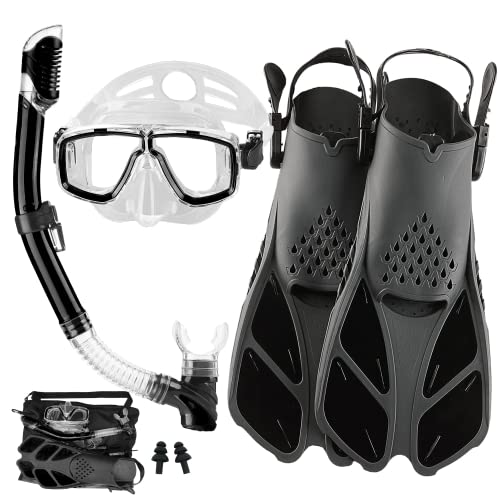 HH HHAO SPORT Snorkelset för vuxna med fenor, snorklingsutrustning i resestorlek med korta justerbara simfenor, högkvalitativ dykmask och torr topp snorkel med bärväska